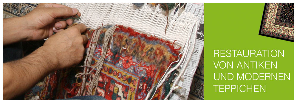 Qualität und gute Pflege schützen leider nicht vor normalen Abnutzungserscheinungen und Verschleiß. Damit Sie möglichst lange Freude an Ihren Teppichen haben, restauriert unser Meister in unserer Fachwerkstatt Teppiche aller Art und haucht ihnen so neues Leben ein. Unsere besondere Stärke ist die Komplett-Restauration von antiken Teppichen. Die Restauration führen wir erst nach vorheriger und ausführlicher Beratung durch, die für Sie selbstverständlich kostenfrei ist.