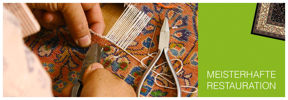 Da wir eine eigene Teppichfachwerkstatt betreiben, können wir während der Restauration des Teppichs auf jedes einzelne Detail achten. Unsere besondere Stärke ist die Komplett-Restauration von antiken Teppichen. Die Restauration wird nach vorheriger und ausführlicher Beratung durchgeführt, die für Sie selbstverständlich kostenfrei ist. All dies geschieht unter den Augen unseres hauseigenen Sachverständigen für handgeknüpfte Orientteppiche.